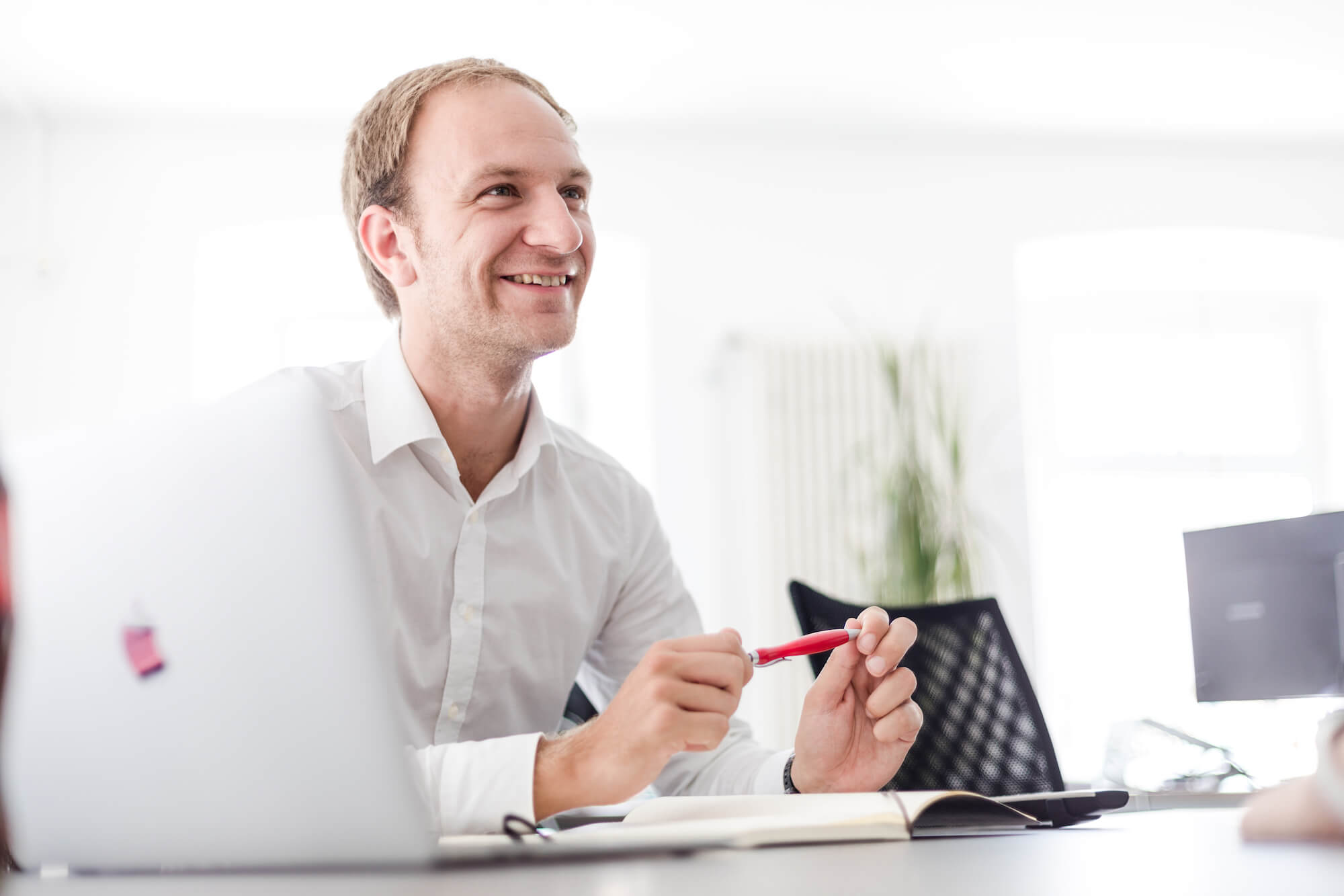Alle Kollegen sind wieder aus ihrem verdienten Wochenende zurück und wir starten mit unserem wöchentlichen Jourfixe. Jeder Mitarbeiter erläutert seine aktuellen Aufgabenbereiche, Deadlines, Kundentermine, etc.. So können bei Engpässen ToDos intern umstrukturiert werden, sodass am Schluss alles pünktlich und erfolgreich fertiggestellt wird und Sie als Kunde und auch wir im Team zufrieden sind. Nadine notiert sich alle Informationen, welche sie für die Planung der Projekte benötigt und verteilt neue Arbeiten in den jeweiligen Bereichen. Zum Schluss werden noch allgemeine Angelegenheiten besprochen und diskutiert. Danach geht's in die 1:1 Gespräche, jede Woche mit einem anderen Kollegen. Das Zwischenmenschliche ist für mich extrem wichtig, wir wollen eine Kultur des gegenseitigen Vertrauens und der gegenseitigen Motivation pflegen, das ist nur möglich mit viel Vertrauen.